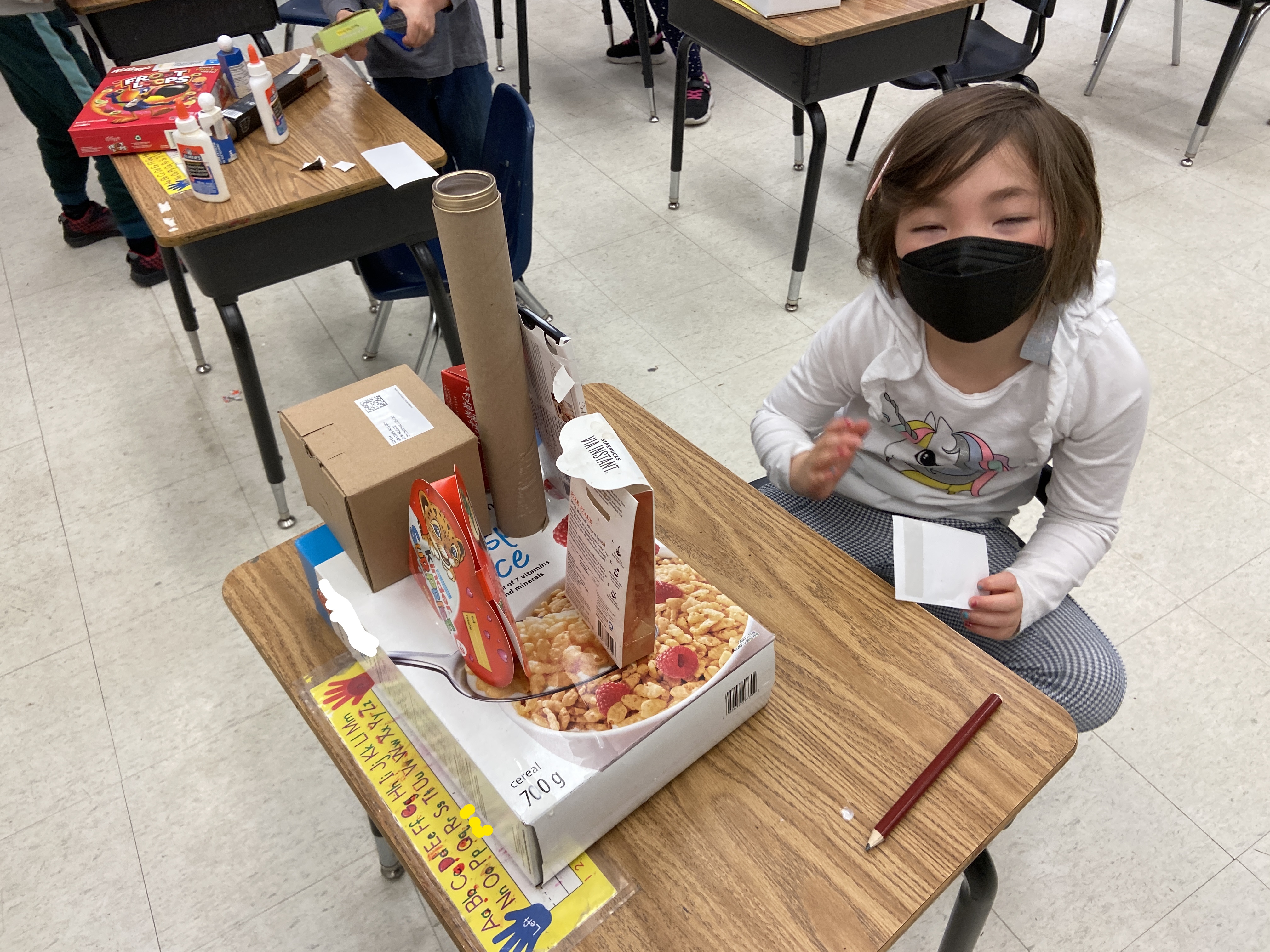 Before the break, we wrapped up social studies by presenting our projects on what we want to be when we grow up. These are on display in our classroom and will come home soon. We are now back to science and working on a unit about structures and materials. During online learning, we learned that objects and structures serve a purpose, for example, a desk gives us a surface to work on. We also began investigating different materials. Some are flexible, some are strong. Some absorb water, others repel water. We did a couple great experiments from home to test materials. One involved building the 3 houses for the 3 little pigs. I saw houses of straw, paper and cards, then we used wooden blocks for the second, and Lego or connecting shapes for the third. We tested these either by blowing, or rolling a ball at them. We learned that the material, the connector, and the design influenced which house was the strongest. Such a fun afternoon! Another day, we gathered some materials and dunked them in water to see if they were waterproof. It was so fun to see some students following along at the sink or the bathtub!